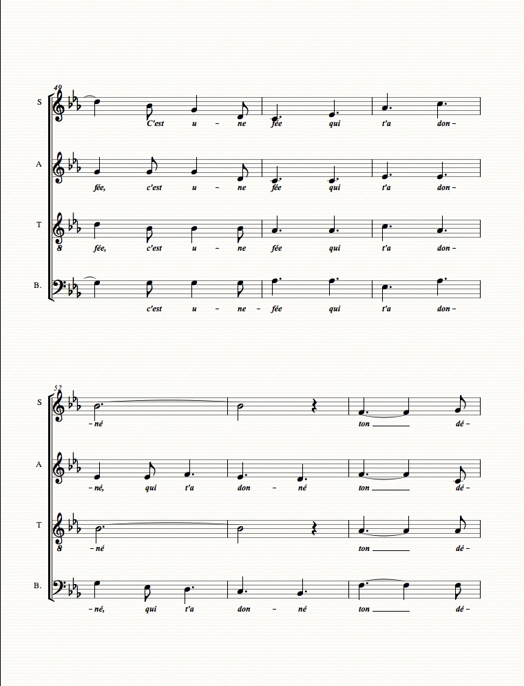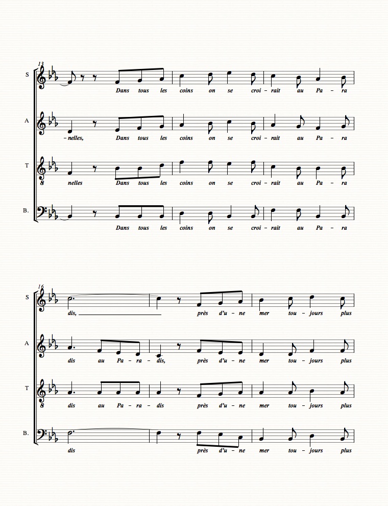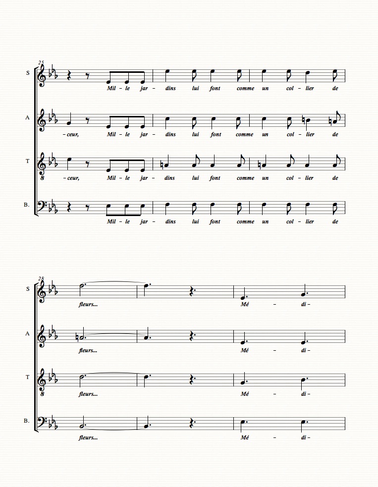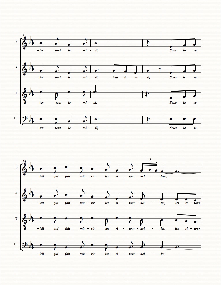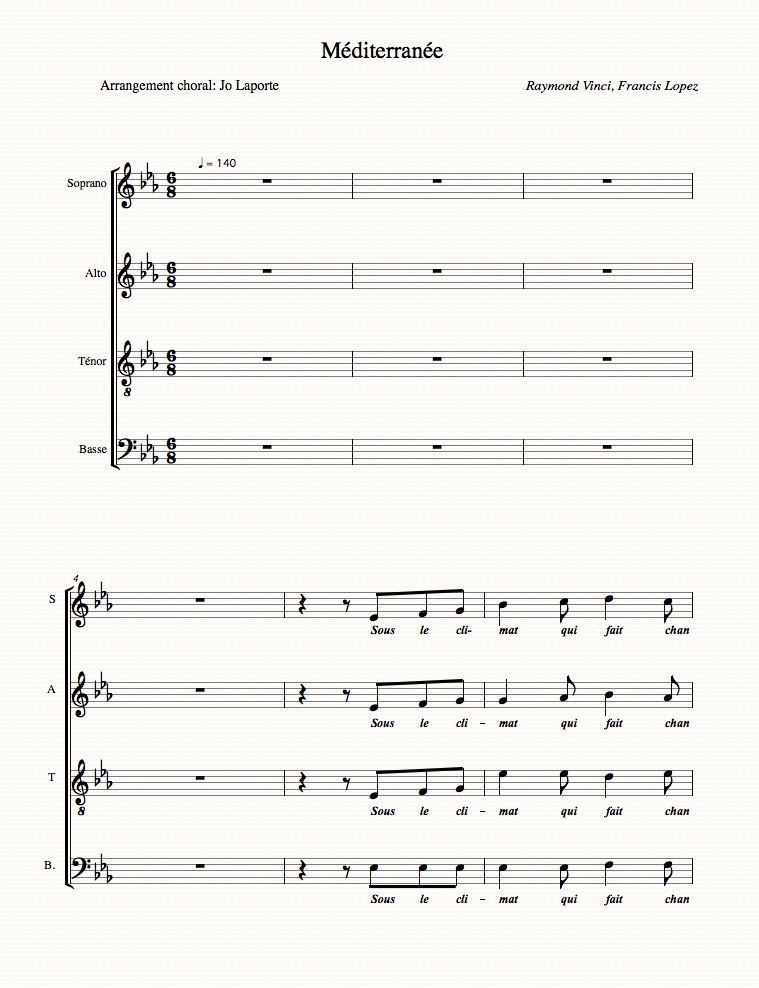 La version pour choeur sera forcément plus lente que celle de Tino Rossi, mais plus rapide que l'enregistrement qui suit, qui a pour but de bien mettre en place les différentes voix.